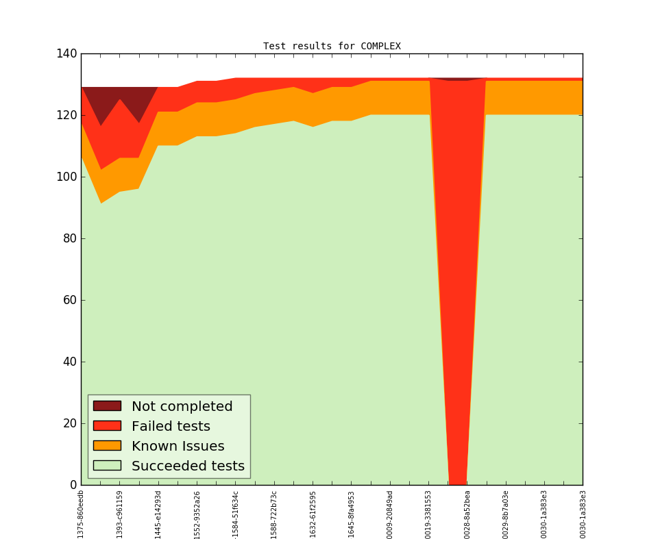 | Summary | 124 tests: 101 succeeded 12 FAILED 11 known bugs | 124 tests: 86 succeeded 14 FAILED 13 killed 11 known bugs | 124 tests: 90 succeeded 19 FAILED 11 known bugs 4 killed | 124 tests: 91 succeeded 12 killed 11 FAILED 10 known bugs | 124 tests: 105 succeeded 11 known bugs 8 FAILED | 124 tests: 105 succeeded 11 known bugs 8 FAILED | 126 tests: 108 succeeded 11 known bugs 7 FAILED | 126 tests: 108 succeeded 11 known bugs 7 FAILED | 127 tests: 109 succeeded 11 known bugs 7 FAILED | 127 tests: 111 succeeded 11 known bugs 5 FAILED | 127 tests: 112 succeeded 11 known bugs 4 FAILED | 127 tests: 113 succeeded 11 known bugs 3 FAILED | 127 tests: 111 succeeded 11 known bugs 5 FAILED | 127 tests: 113 succeeded 11 known bugs 3 FAILED | 127 tests: 113 succeeded 11 known bugs 3 FAILED | 127 tests: 115 succeeded 11 known bugs 1 FAILED | 127 tests: 115 succeeded 11 known bugs 1 FAILED | 127 tests: 115 succeeded 11 known bugs 1 FAILED | 127 tests: 115 succeeded 11 known bugs 1 FAILED | 127 tests: 126 FAILED 1 killed | 127 tests: 126 FAILED 1 killed | 127 tests: 115 succeeded 11 known bugs 1 FAILED | 127 tests: 115 succeeded 11 known bugs 1 FAILED | 127 tests: 115 succeeded 11 known bugs 1 FAILED | 127 tests: 115 succeeded 11 known bugs 1 FAILED | 127 tests: 115 succeeded 11 known bugs 1 FAILED | 127 tests: 115 succeeded 11 known bugs 1 FAILED |